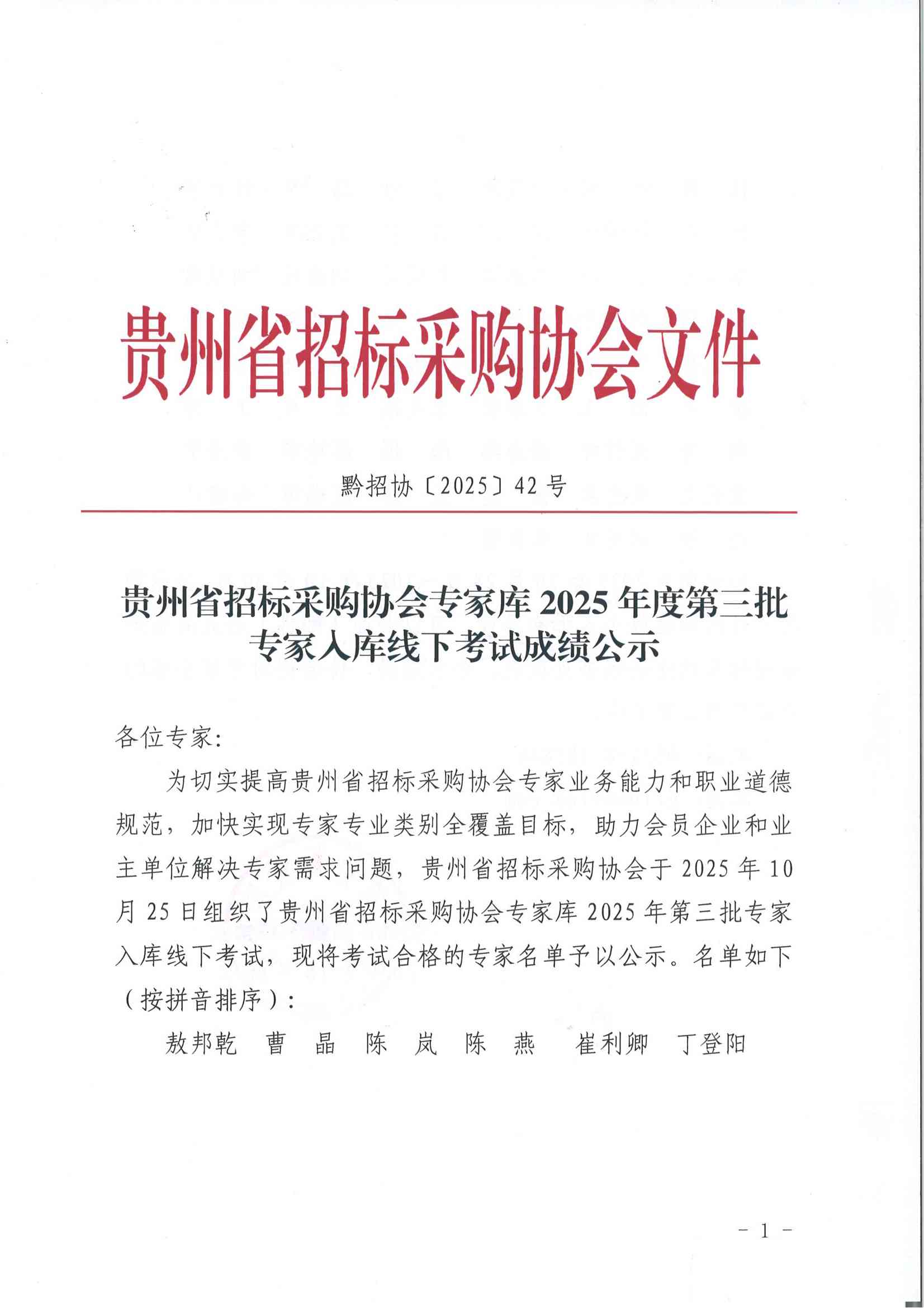 贵州省招标采购协会专家库2025年度第三批专家入库线下考试成绩公示.PDF