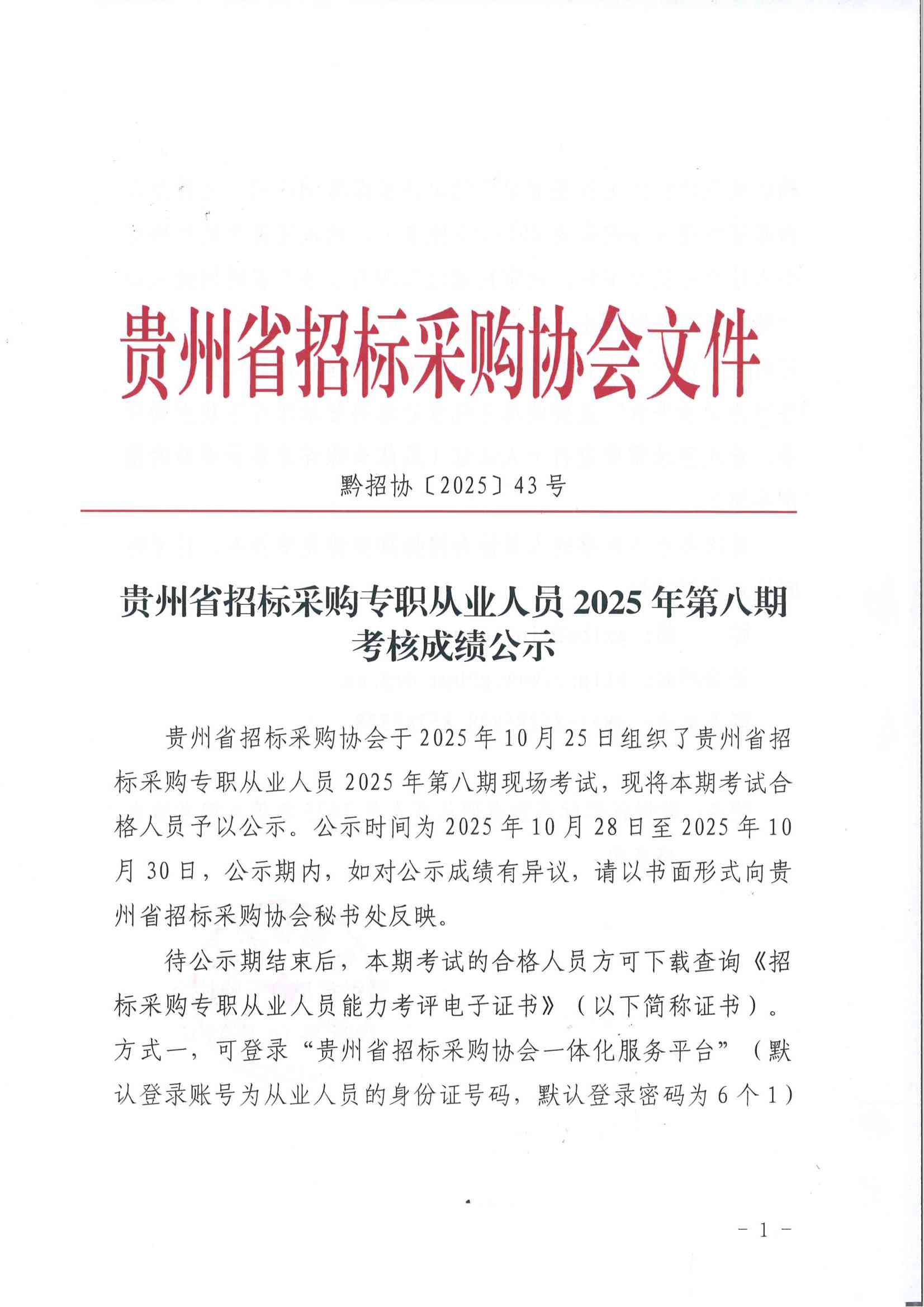 贵州省招标采购专职从业人员2025年第八期考核成绩公示.PDF