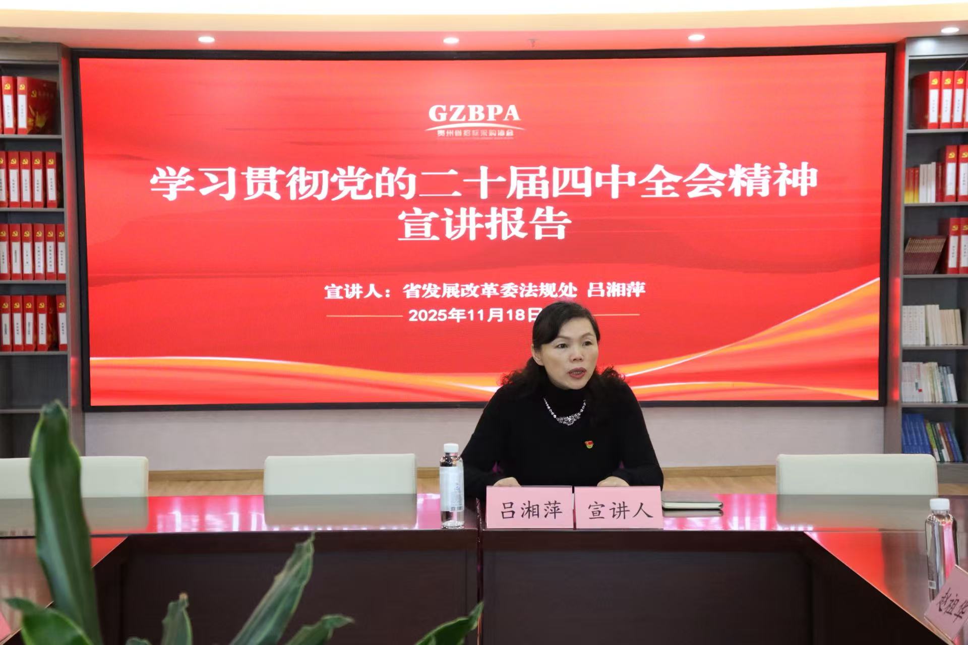 为深入学习贯彻党的二十届四中全会精神,切实把思想和行动统一到党中央决策部署及省委、省政府工作要求上来,11月18日,贵州省发展改革委法规处处长、协会党建指导员吕湘萍到我会进行宣讲,法规处一级主任科员赵祖华、袁培佑及协会全体党员职工参加此次宣讲学习。