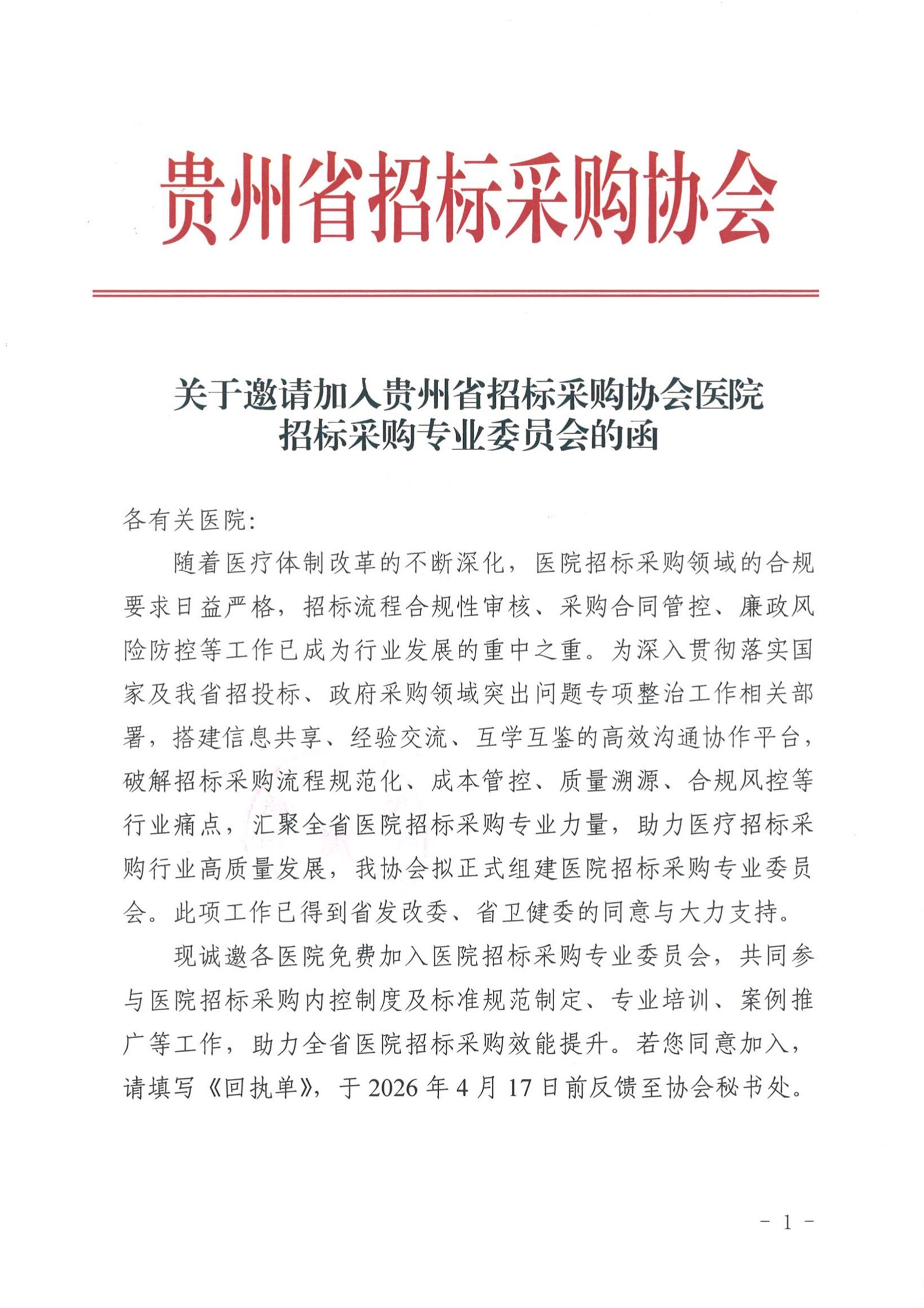 关于邀请加入贵州省招标采购协会医院招标采购专业委员会的函.PDF