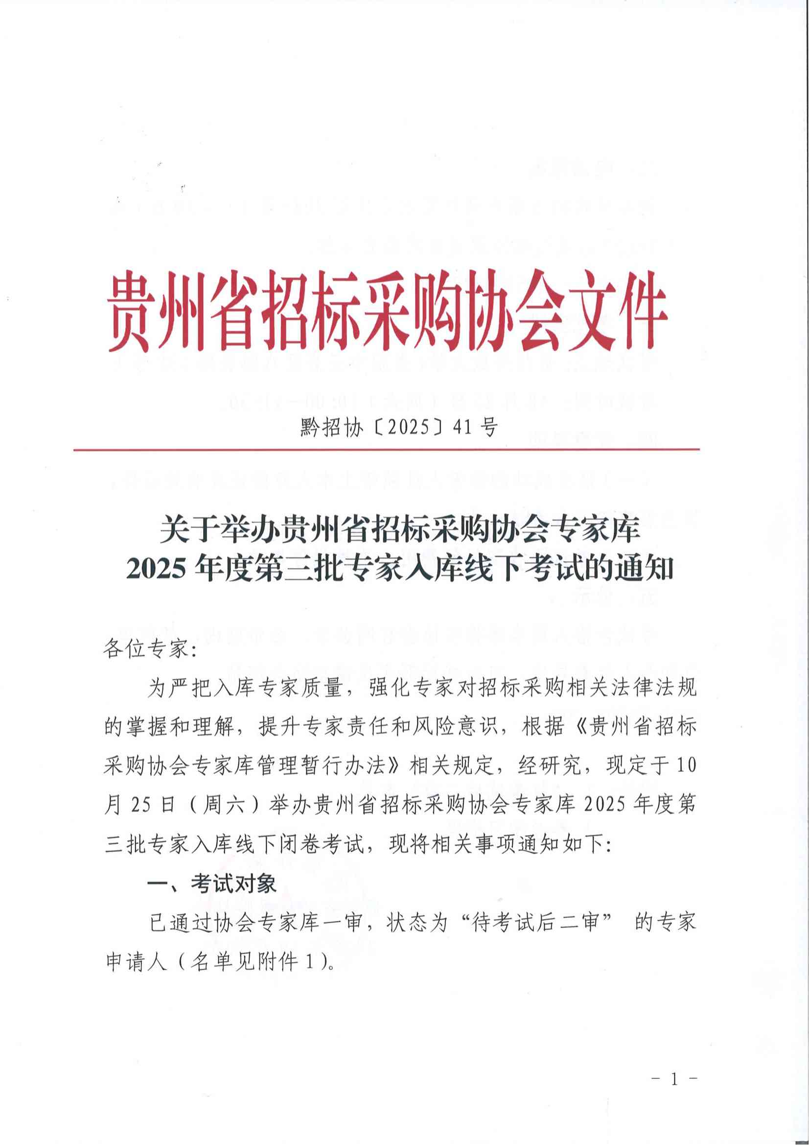 关于举办贵州省招标采购协会专家库2025年度第三批专家入库线下考试的通知.PDF