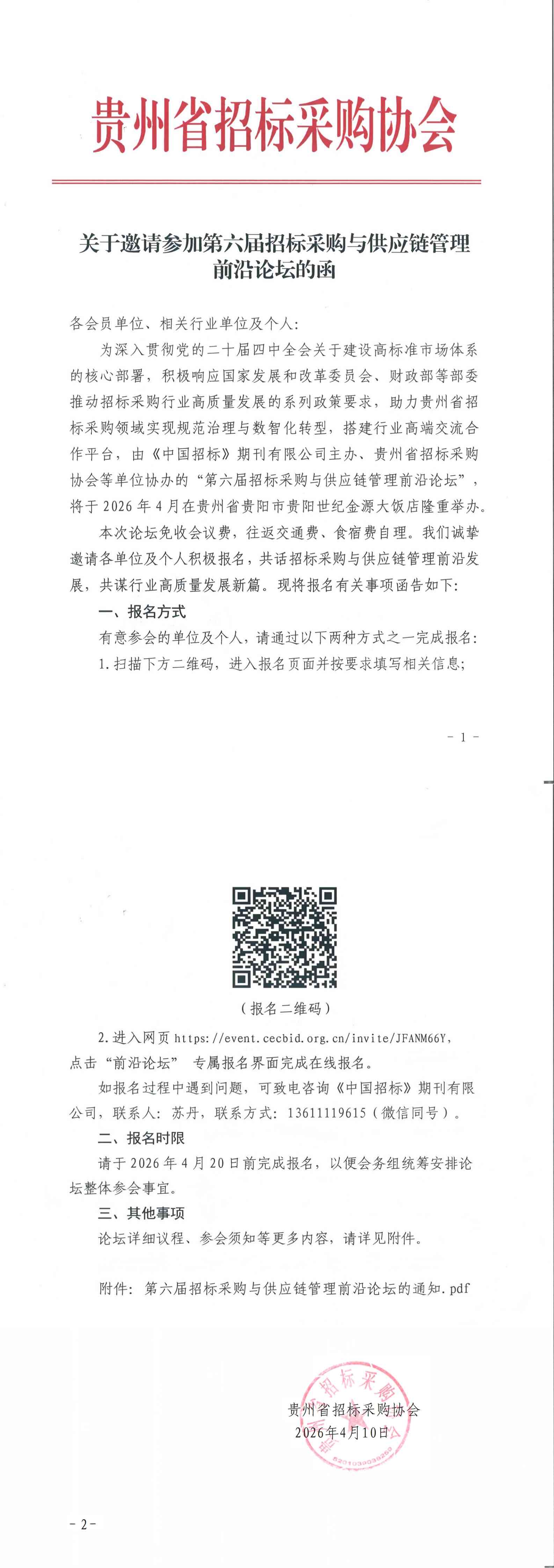 关于邀请参加第六届招标采购与供应链管理前沿论坛的函.PDF
